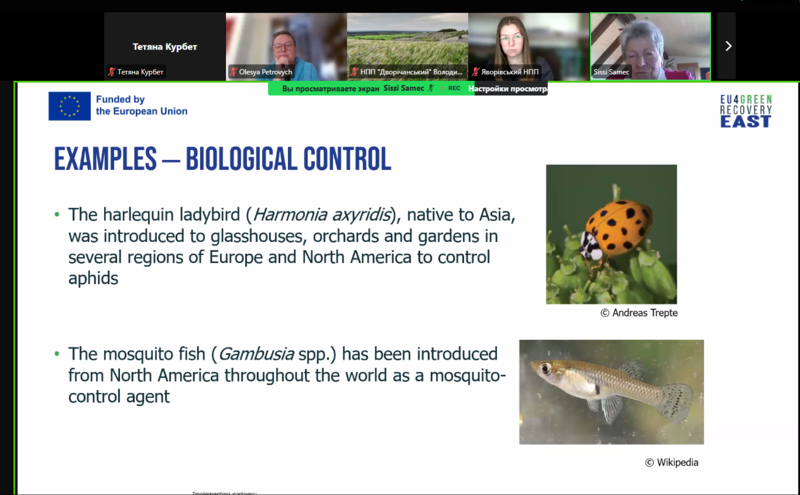 Захід відбувся в межах програми EU4Green Recovery East та об’єднав представників науки, державних органів і природоохоронних установ. Ключові підходи до регулювання інвазійних видів у ЄС та практичні аспекти впровадження Регламенту представила Сіссі Самек, експертка програми EU4GRE. Учасники ознайомилися з сучасними методами оцінки ризиків, моніторингу та управління інвазійними видами, а також з досвідом європейських країн, зокрема Австрія, Чеська Республіка та Польща. Участь у вебінарі сприяла підвищенню професійної компетентності науковців філіалу та впровадженню європейських підходів у сфері збереження біорізноманіття.